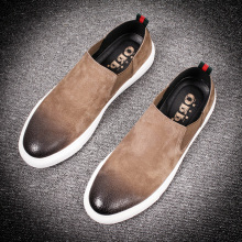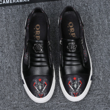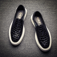 2017新款低帮乐福板鞋圆头套脚真皮男鞋印花鞋春秋透气内增高