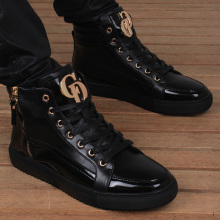 青年学生高帮鞋男韩版内增高圆头潮流男鞋英伦新款真皮休闲鞋春秋