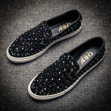 春秋韩版乐福鞋男士板鞋潮流鞋学生内增高鞋圆头套脚休闲亮片皮鞋