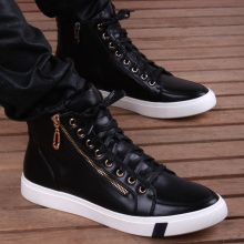 青春潮流休闲鞋真皮鞋子男韩版青年鞋学生男士加毛高帮板鞋秋冬款