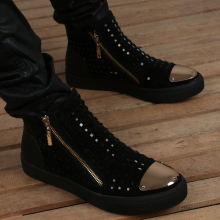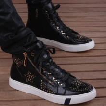 2017男鞋春秋新款男士青春潮流韩版潮男内增高系带铆钉滑板鞋