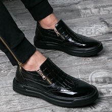 低帮乐福板鞋3D韩版潮流内增高新款日常休闲拉链套脚皮面男鞋