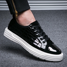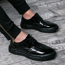 圆头系带厚底男鞋乐福鞋春秋新款日常休闲板鞋亮皮鞋子潮流内增高