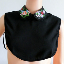 韩版百搭秋冬季黑白色雪纺衬衫假领子女欧根纱彩色刺绣假衬衣领子