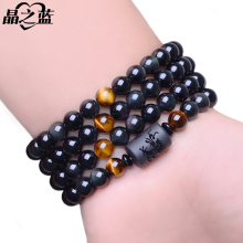 晶之蓝黑曜石貔貅手链 男女 金曜石佛珠虎眼石手串 天然水晶饰品