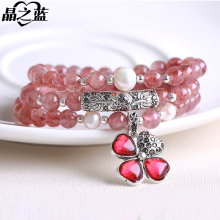 晶之蓝草莓晶多层手链 珍珠粉晶多圈手串 女款水晶饰品礼物