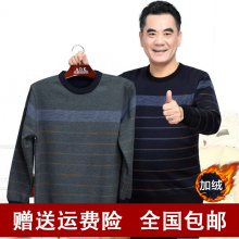冬季中年男士长袖T恤圆领毛衣加绒加厚保暖爸爸装中老年针织衫男