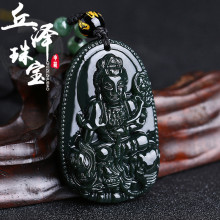 丘泽珠宝本命佛女男项链冰种黑曜石普贤菩萨吊坠龙蛇守护神开光
