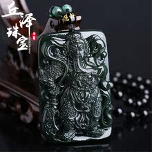 丘泽珠宝和田玉墨玉武财神关公吊坠霸气女男士平安无事牌项链开光