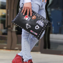 2015款包包休闲单肩包 韩版时尚斜挎包长款铆钉手包潮男手拿包大
