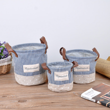 棉麻蓝条纹拼布小圆桶卷纸收纳筒 棉麻收纳筐 防水可折叠大中小号