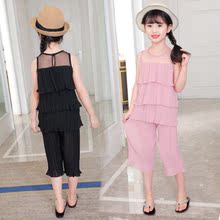 雪纺女童套装夏装2017新款女孩9中大童11潮衣13周岁儿童童装8韩版