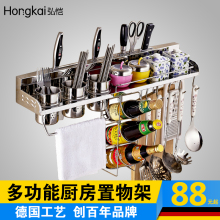 弘恺 厨房置物架壁挂收纳调料多功能刀架用品用具304不锈钢置物架
