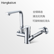 弘恺全铜抽拉式厨房水龙头冷热洗碗池面盆拉伸洗菜盆万向水槽龙头