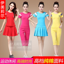杨丽萍广场舞服装 春夏新款套装短袖短裙运动跳操舞蹈服演出服