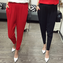 2017新款高腰小脚九分雪纺宽松哈伦裤女夏季薄款纯色9分休闲裤子