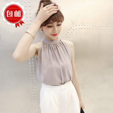 2015夏装新款名媛气质性感露肩挂脖雪纺衫女韩版无袖挂脖雪纺上衣