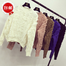 2016秋冬韩版复古民族风刺绣花朵宽松短款高领马海毛短款毛衣女