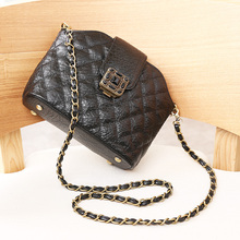 百魅2017新款真皮女包羊皮单肩斜挎包包小锁扣迷你链条菱格手机包