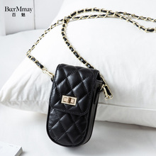 百魅真皮女包2016新款羊皮菱格手机包零钱包单肩包迷你斜跨小包包