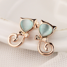 超萌猫咪猫眼石耳钉女日韩国甜美气质可爱耳环韩版耳饰饰品C2509