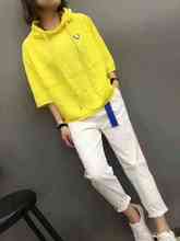 2017春装新款天丝麻带帽胸前带标显瘦短袖T恤卫衣