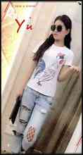 2017欧洲站爆款女圆领短袖卡通图案印花修身夏t恤新品上市