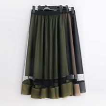2017春夏新款韩版高腰显瘦拼接透视a字裙网纱半身裙中长款女裙子
