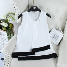 J33夏装新款女装不规则拼接撞色无袖背心雪纺衫A字娃娃衫上衣7472