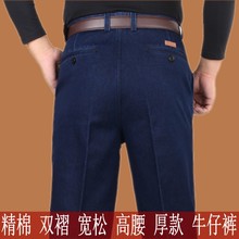 秋冬厚款正品男裤仔裤中老年牛仔裤男宽松弹力免烫高腰纯棉男装裤