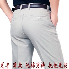 正品男装纯棉休闲裤夏季薄款中老年男士长裤商务抗皱直筒宽松男裤