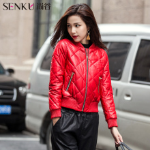 senku韩版短款立领真皮皮衣棒球服 绵羊皮短外套拉链春款薄羽绒服