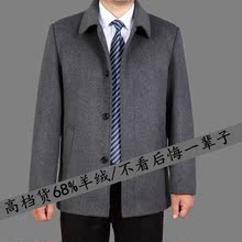 秋冬毛呢夹克中老年爸爸装茄克中年男士加绒加厚翻领大衣父亲外套