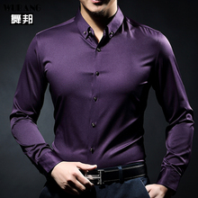 舞邦春秋季男士长袖衬衫商务休闲纯色男装修身青中年衬衣潮款免烫