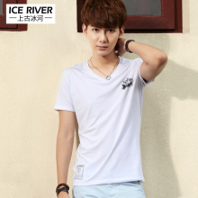 ICERIVER男生打底短袖t恤莫代尔体桖衫修身韩版圆领半袖上衣
