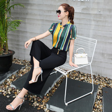 2017夏装新款套装女时尚条纹雪纺上衣宽松阔腿裤套装两件套女显瘦