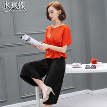 水寒蝶2017夏装新款韩版女装上衣修身收腰两件套阔腿裤套装九分裤