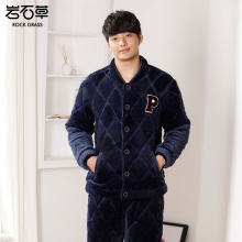 睡衣男士秋冬季夹棉珊瑚绒三层加厚家居服套装韩版长袖法兰绒棉袄