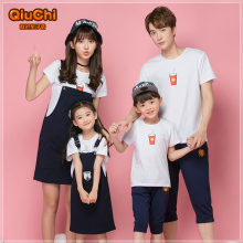 秋迟亲子装夏装家庭装T恤2017新款一家三口全家装母女装裙裤套装