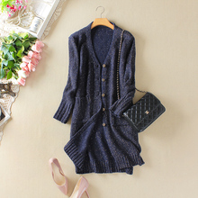 花线毛衣外套女2016秋冬装新款韩范针织开衫中长款宽松显瘦针织衫