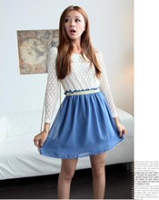 清仓特价复古欧美大牌娃娃领撞色高腰收腰蕾丝雪纺拼接连衣裙2色