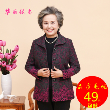妈妈装毛呢子外套中老年人女装春秋装上衣50-60岁服装大码奶奶装