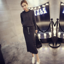 秋冬大码女装修身长袖两件套加绒加厚运动卫衣半身裙套装系带长裙