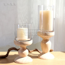 玻璃烛台 实木底座烛台欧美法式乡村简约现代玻璃烛台多功能风灯
