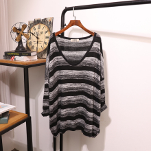 2017春秋新款毛衣针织衫 韩版条纹中长款长袖套头V领宽松打底衫女