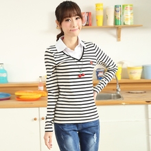 热卖春早秋 女长袖T恤韩版修身大码显瘦假两件套针织宽松打底衫