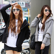 包邮新品秋冬女长袖外套韩版胖mm大码蝙蝠衫宽松显瘦连帽开衫卫衣