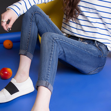 2017春夏款破洞牛仔九分裤女韩版显瘦牛仔裤时尚弹力小脚铅笔裤