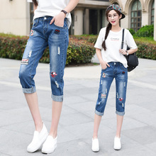 2017春夏款破洞九分牛仔裤女bf风宽松九分裤乞丐裤卷边牛仔小脚裤