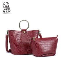 好莱奴欧美时尚潮流圆环女包单肩斜挎包包复古鳄鱼纹手提包单肩包